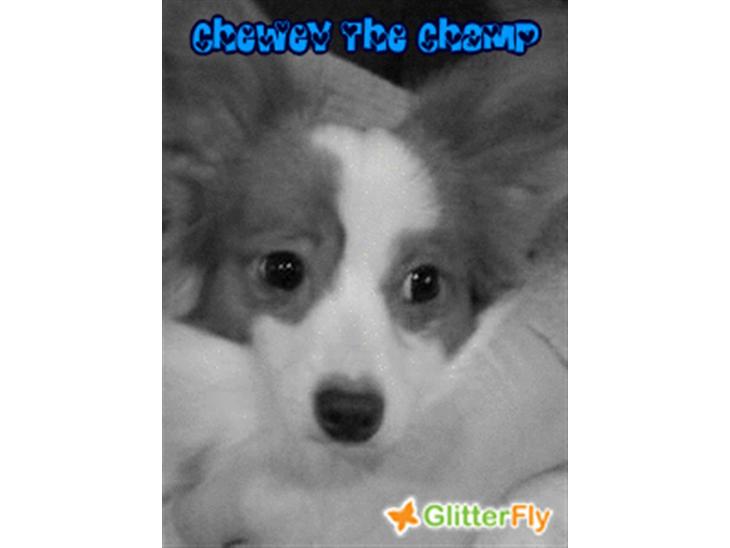 Chewey blev d. 24.02.2013 aflivet pga diskusprolaps i ryggen :'( Dyrlægen havde i 3 mdr påstået at det var maveinfluenza , men de sidste par dage han levede i , blev det hele værre .. Han ville ikke lette ben , han skreg når man prøvede at kæle med ham og han var meget nedtrygt .. Min veninde (som havde ham) tog den hårde beslutning sent om aftenen efter at have snakket med vagtdyrlægen , hans smerter skulle ikke blive ved 1 sek længere ! Han er savnet og det er hårdt at sige farvel til så ung en hund , men nu har han ingen smerter mere .. Heldigvis nåede han at blive Far til 3 smukke Prinsesser <3