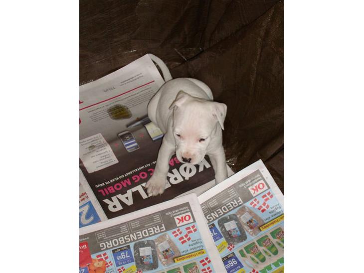 hun er en super flot hvid hund med enkelte hvide prikker på ørene..!!