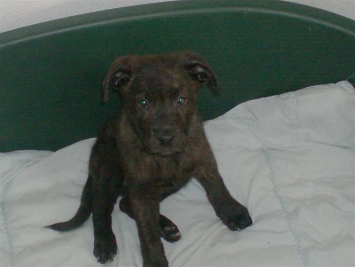 Ingen stamtavle heller, han er en blanding af en schæfer og en amstaff..