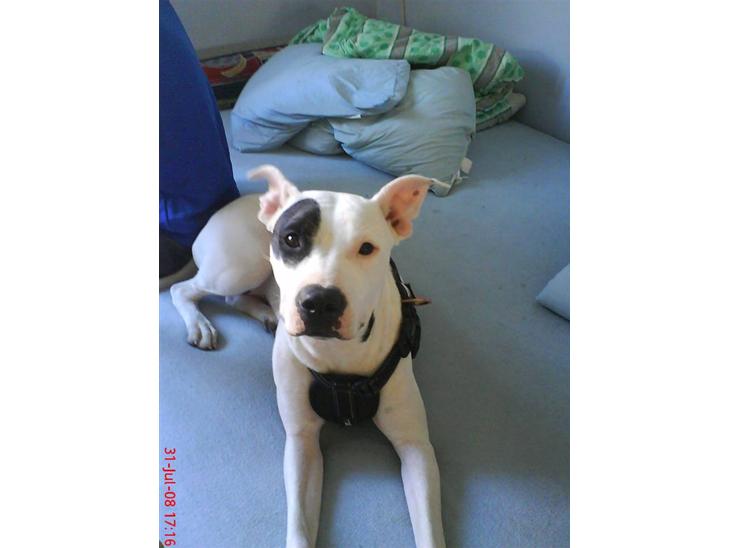 pletterne er mørke med sandfarvet triber. mørke brune øjne og korthåret pels