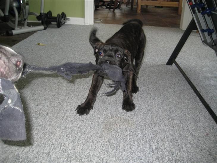 En super skøn og dejlig hunhund på 10 uger... Hun er en blanding af far som er Dogo Canario og mor som er Cane Corso...