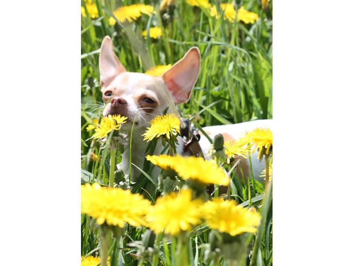 Hun er en lille korthåret chihuahua, broget hvid og lysebrun ;p Hun kan godt lide at ligge tæt op ad nogen/noget.