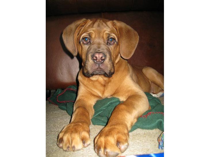 Gyldenbrun med sort maske,glimt i øjet, og store luffer.