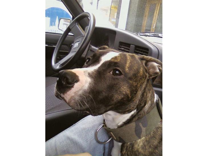 livlig livsglad hun hund. med sine særheder som at gemme maden under tæpper og andet.