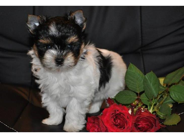 Sød lille biewerhan fra Kennel My Insatiable Love fra Tyskland. Han hedder Cupcake, men kaldes Cuppi til hverdag. Cuppi har hvid krop, sort hoved, og to fine sorte markeringer.