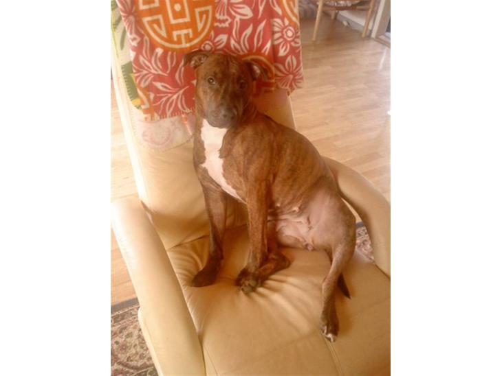 min er en amstaff men den gammle lille slags og havde jeg sat et billede af min herind havde du troet det var din smiler .....er du gal din ligner min på en prik ....men min er amstaff .og hun er 44 cm høj