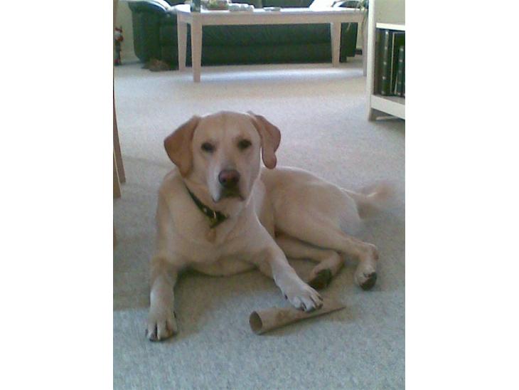 Alt i alt er han en rigtig sød hund, der altid møder en med logrende hale. Bare man kigger på ham kører halen frem og tilbage.