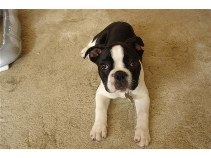 Hvor er han bare sød! Han minder nu lidt om en boston terrier, men fin, dét er han!