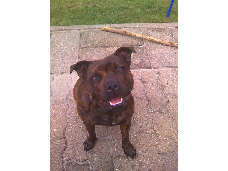 Freya er en sød og dejlig lille staff, med meget fine aftegninger. Hun er født den 30.3.09. Hun er ekstremt menneske glad og super nysgerrig. Alt skal udforskes og hun er super legesyg og en værre lille lømmel ;) Børn er et sikkert hit. Hun er i evigt godt humør og det bedste hun ved er at ligge og putte på sofaen med 'mor' og 'far' :)
