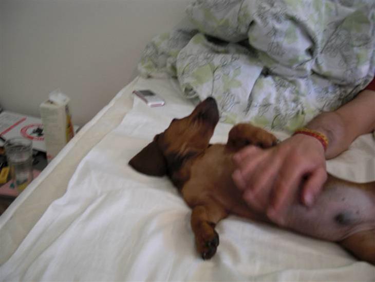 Vi fik Günter for lidt over en uge siden. han var meget stille i starten, men efter flere dage hvor han havde været hos os, kunne vi se mere og mere af hans personlighed. han er rigtig fræk, og elsker at bide i alt fra vores gulvtæpper, til mit sengetøj. selv om han har en masse legetøj, vil han stadig kun bide i det han ikke må.