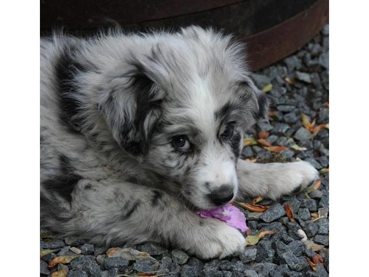 Han er en fantastisk hvalp. Han er virkelig ivrrig for at lære og han er ikke bange for noget. Han er meger obs på os og følger os overalt.