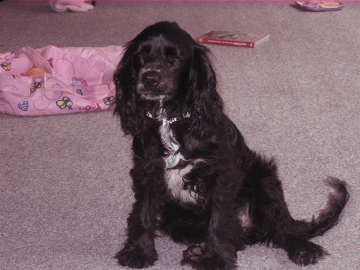 hendes mor er en sort cockerspaniel og hendes far er en black tan højt primiært.