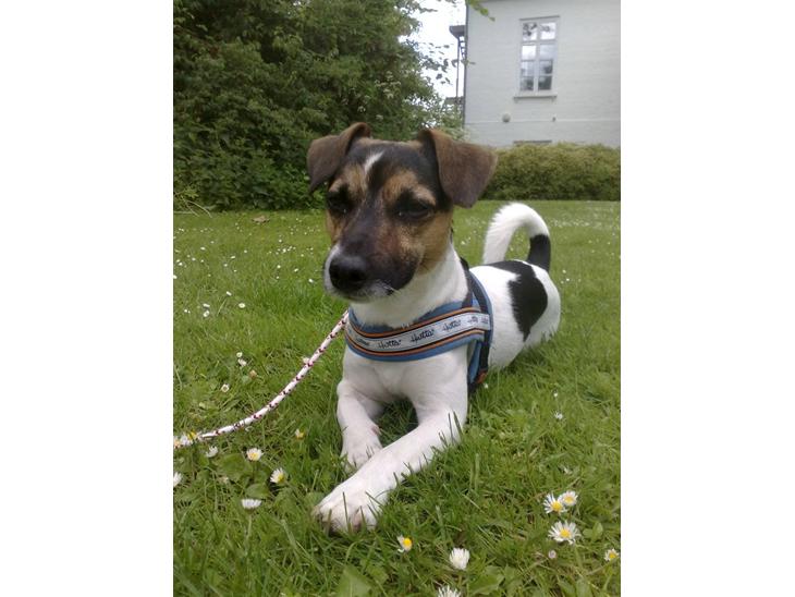 ½ dansk/svensk gårhund og ½ jack russel terrier.