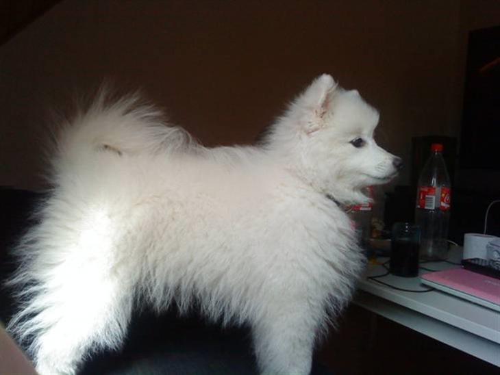Hun er en skøn lille hvid pige, hun elsker at lege uden for, og bryder sig bestemt ikk om at gå i snor :)