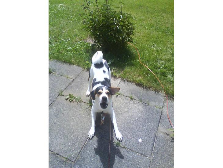 Sød hund, men du må ikke springe agility med ham før han er 12 måneder, det kan give utrolige varrige skader ved hofte, knæ og ryg, fordi han stadig vokser meget. Bare til oplysning.