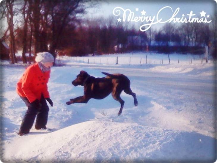 Jeg er snart 1 år gammel, jeg elsker sne og det er rigtig dejligt når min familie gider at lege med mig i den.