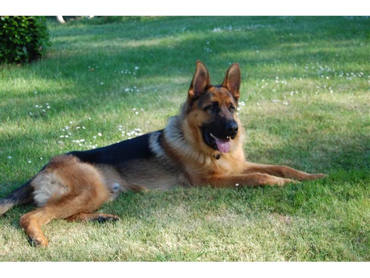 Utrolig flot schæfer. Kæresten og jeg har selv en meget i stil med ham her, og vi er lige så glade for vores som i er for jeres med garanti! Det er en utrolig lækker hund at have med at gøre!