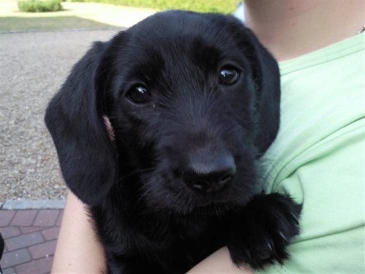 hun er en ruhåret gravhund i hovdet, men har en labrodore pels.