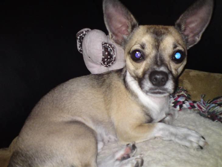 Sikke en sød lille hund. Meget speciel blanding :o)