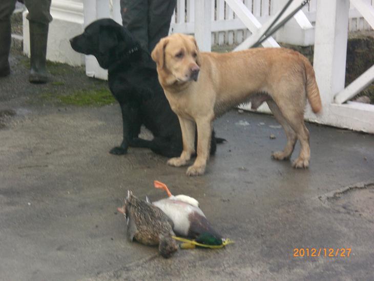 Når han er med på jagt kan han blive gal på en af de andre hanhunde og vil slås, siger min mand, men han gør det aldrig ude i selve såten når han er løs og skal apportere. Han er sindsyg god til at drive og løber mere og længere end labradorer gør normalt.