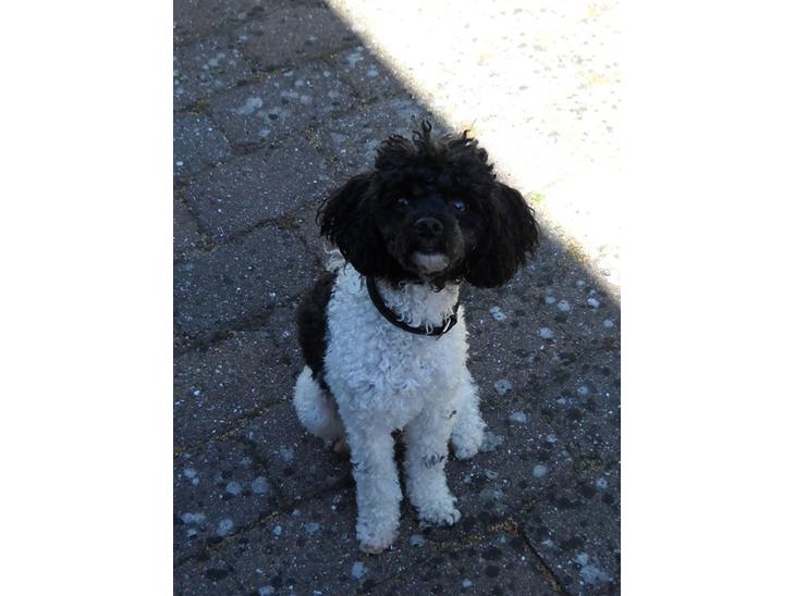 Tak for alle jeres søde kommentarer. Hun er en Harlequin-puddel. Racen er aldrig rigtig blevet "accepteret" herhjemme i Danmark, men mener at de stammer fra Tyskland. Er dog interesseret hvis der er nogen som ved noget mere om racen:-).