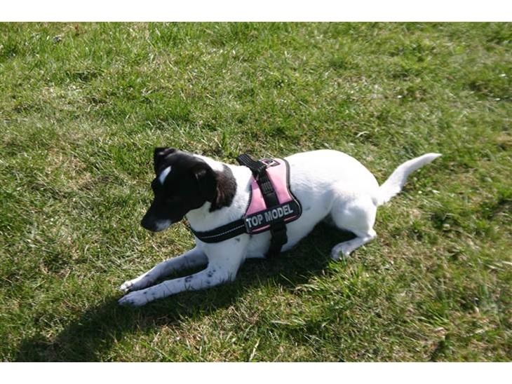 Mille er en legesyg hund, der er glad for børn. Hun leger meget sammen med sin "storebror" og vi bruger hende som hans vækkeur hver morgen! Så hopper hun op i hans seng og slikker på ham :D