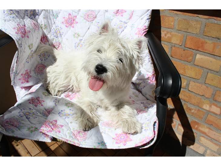 Her kunne jeg skrive "stille og rolig", men det ville være en lille hvid løgn. Hun er en meget aktiv lille hund, og hun styrter gerne rundt og leger med sko, pivdyr, sokker (som, man ellers syntes, ramte vasketøjskurven, da man smed dem aftenen inden:) og alt muligt andet, der kunne have været en lille mus, og som lige skal rystes og knurres ad.