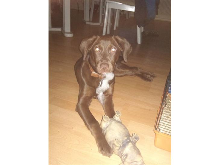 Vi har ud over Kaila tre katte som Kaila syntes er meget sjove at jagte, men den syntes knap de er så sjove når de så jagter den..