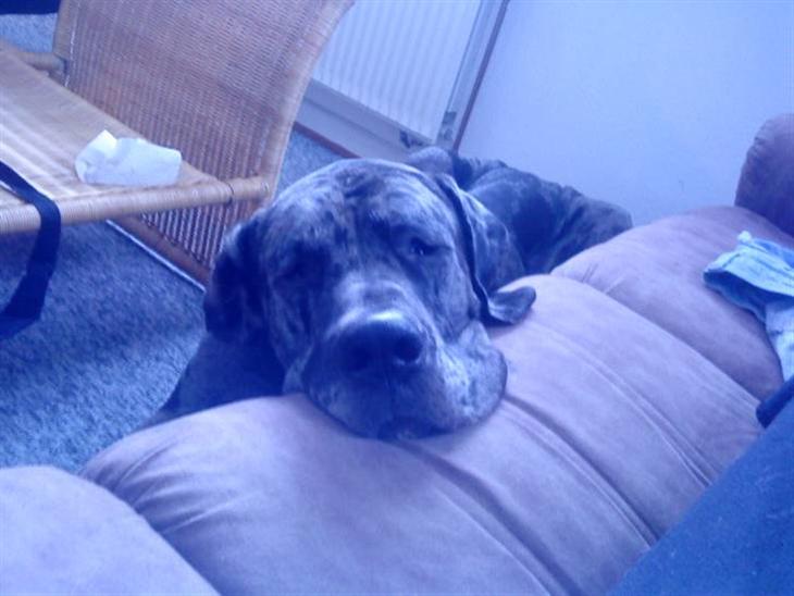 super dejlig hund, god til børn, søde ved alle mennesker, en smule opmærksomhedskrævende, meget kluntet, ellers bare alt det man kan fortælle om en god og rar hund. :) udover det er han den eneste hund jeg kender der kan bruge en hovedpude rigtigt og gør det konstant. ;)