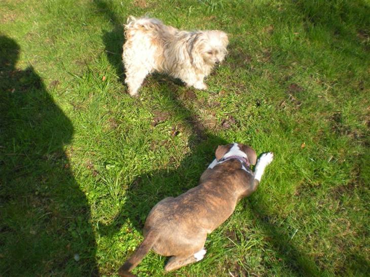 Sikke en "farlig" kamphund, som skambidder små vapser... Jeg håber at du kan høre ironien i det.. Dejlig hund, høj herfra..