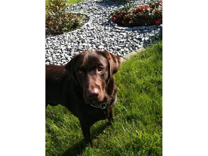 En stor dejlig familie hund, han er glad og lidt klodset. Han er et stor lege barn inu.