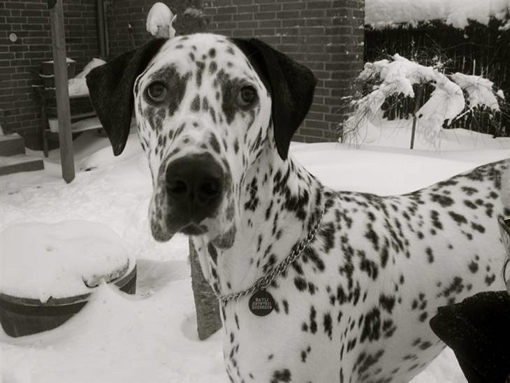 Bayli er en blanding mellem grand danois og en dalmatiner. Vores dyrelæge siger dog at det eneste dalmatiner der er i ham er pletterne.
