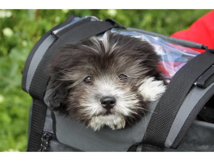 Hans mor er blanding af puddel/westi, og hans far er ren papilion