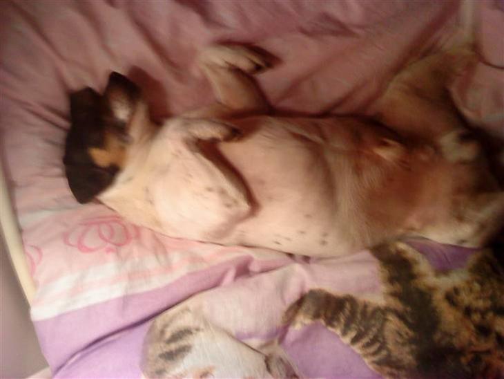 hader drenge og en hund der elsker mad og han sluger det som en pille. han elsker og sove under min dyne og min lille putte gris men ikk når han snåker og prutter ..... AD