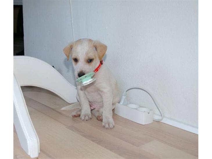 vi har lige fået ham hjem og han er meget kælen og vil gerne putte og lege med vores bamse vores golden retriver og går til træning med ham