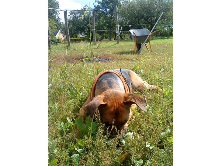 Udover alt det er han en utrolig trofast og hengiven hund. Han strejfer ikke, og hygger i sengen eller sofaen med glæde. Når man er på toilettet er man et nemt offer, for der kan man ikke gå. Hæhæ. Og så bliver man jo nødt til at klappe ham og fjolle med ham.