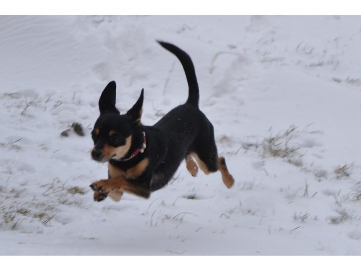 hun er stadig vild efter og lære nye ting, og det har vi det meget sjov med.. hun sys dog det er lidt træls når sneen har lagt og frosset til. og hun fryser let sine poter, så tror hun ser frem til sommer og sol igen...