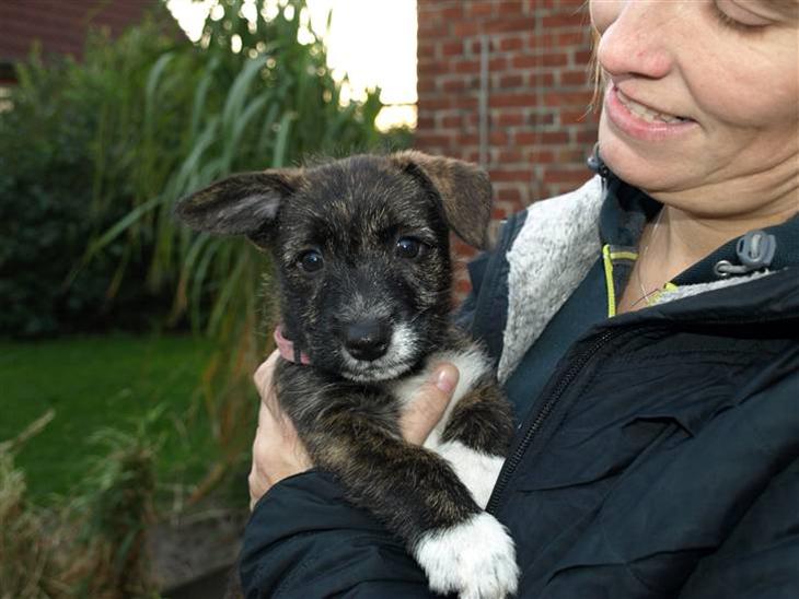 Hendes måde at knytte sig til mig er helt unik, bare efter 5 minutter vidste hun at hun var min. Emma er brun/sort med hvidt bryst og 4 hvide poter.