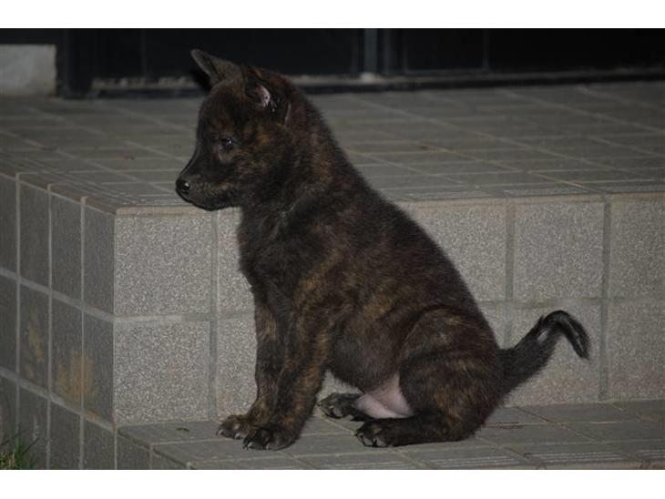 Hej Laura. Næsten korrekt, rød brindle, brindle og sort brindle. Cody her (Shinko Go Kai Ryuosow) er brindle. Vores anden Kai, Mokii er sort brindle.