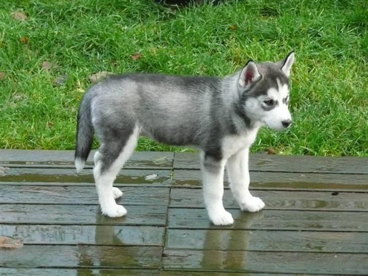 Hendes farver er Grå - Sort & hvid. og en smugle brunt på ørene.