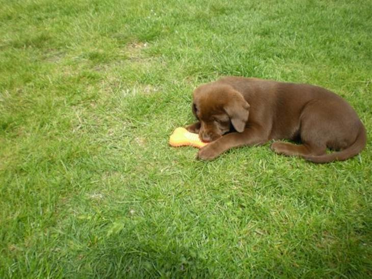 Da de var 8 uger gamle kom vi ned til jer med halsbånd og snor til dig, vi lod dig sige farvel til dine brødre, og gik, 2 meter uden for dit gamle hjem, stoppede du, du ville ikke længere væk, du havde jo lært du ikke måtte gå så langt, det var sq så sødt, min far blev nød til at bære dig, og bagefter da vi kom hjem, legede vi vankrig, og du gøede af os med dit pivende gøende hoved, det var så sødt!!:* Og derefter har vi elsket hinanden, igennem resten af dit liv, og vi vil altid elske hinanden!!:*