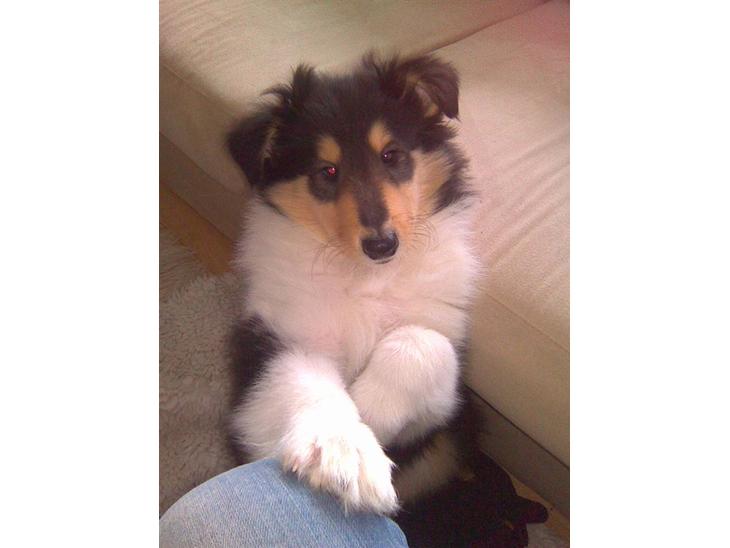 Hej her er min lille collie hvalp Luffe, han er kun 9 uger og vejer 6,7 kg.
