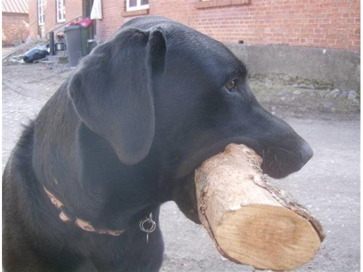 Han elsker at lege, og det er stort set det eneste han har i hovedet. Man ser aldrig Fluffy uden en pind i munden, og jo større jo bedre :D