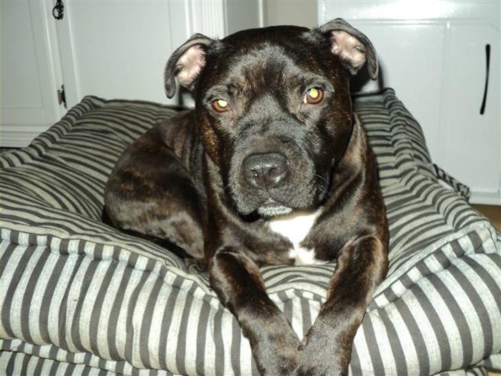 mig og kone skulle ud og kikke på ny hund da den gammel ikke kunne mere... vi kikke rundt men kune ik finde noget så tag vi ud til DYREVÆRNET i rødovre og hvad ser vi en lille dejlig dreng på 3år som så osse er en Staffordshire bull terrier vi prøver og gå en tur med han og vi falder bare for ham nå vi gå op og søger på ham og 6dag efter bliver vi ringe op af dem han er voss smiler så er det bare ud i bilen og ud og hente ham NU men vi vil gerne finde hans far-mor--brøder-søster eller hvad der nu er
