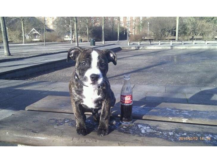 Den er ikke ren, den er halv old english buldogge og halv staff.