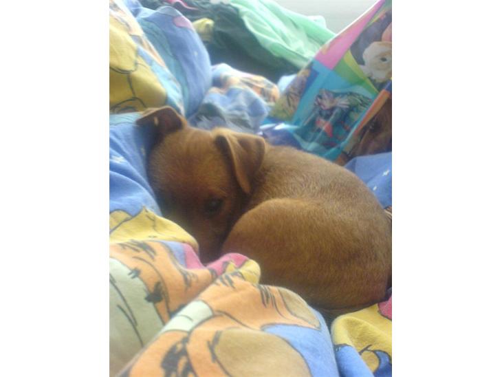 Bounty er en lille blandings hund på 4,5 kg.. så han er en lille skødehund.. Han er en blanding af cain terrier og dværgpinscher....