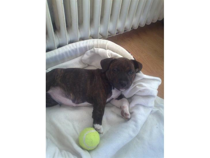 Faren er blanding mellem sbt og bull terrier.. Hedder Otto..