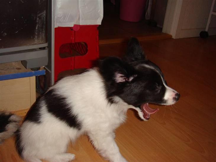 Hun er en flot sort og hvid papillon med smukke sorte aftegn.