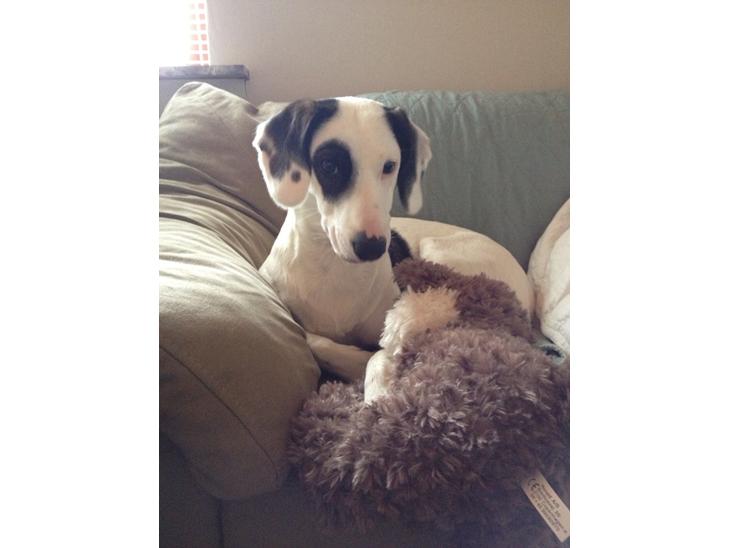Maddie er en af snehvalpene fra Bosnien. Hun blev fundet på gaden i vinters og via Dankas er hun nu kommet til DK. Hun har haft en hård start. Bl.a. er hun skåret op fra navlen ned til lysken for at fjerne en stor byld - formentlig som følge af slag eller spark.