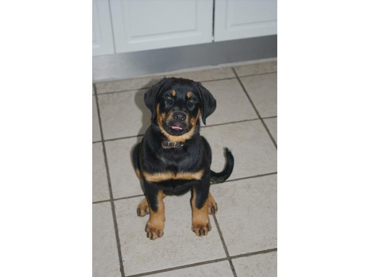 ca. 14 uger 11kg. det var også der at vi fik hinde